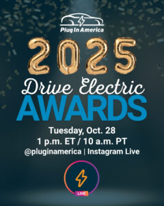 For the first time in Drive Electric Award history, Plug In America will reveal the winners in real time during a special live-stream event on Instagram on Oct. 28 at 1 p.m. ET / 10 a.m. PT.